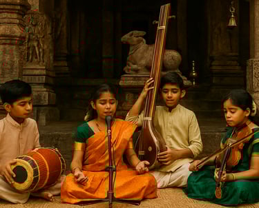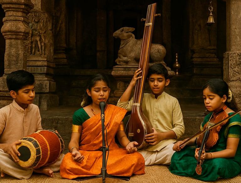 Vocal, violin, mridangam, and other traditional Carnatic instruments are available.